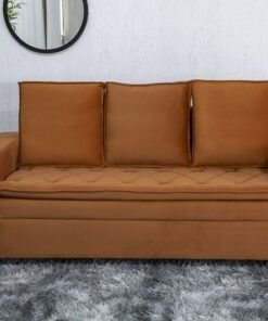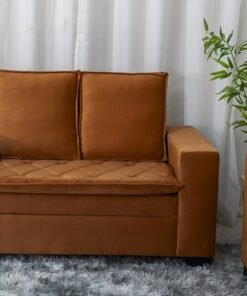 3{%%}Descrição{%%}Sofá 3 e 2 lugares França com Puff Veludo Terracota A62 Larg. 1.86m