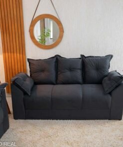 3{%%}Descrição{%%}Sofá 3 e 2 lugares França com Puff Veludo Terracota A62 Larg. 1.86m
