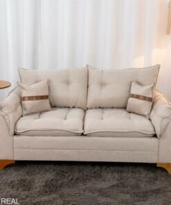 Sofá 3 Lugares Creta Larg. 1.80m Linho Bege 24 – Molas bonnel Medidas: – Largura 1.80m – Prof. 0.85m – Altura: 0.96m – Largura: 20cm(Braços) Assento: – Pillow top 12cm – Espuma Flocos AG D28 – Mola bonnel – Cintas elásticas – Peso indicado: Até 130kg por pessoa. Encosto: – Almofadas Soltas – Fibra de poliéster siliconada – Acompanha duas almofadas decorativas Braço: – Espuma AG D28 Estrutura: – Madeira eucalipto – Grampos Galvanizados Pés: – Pés altos de madeira – Verniz natural, pintura UV Revestimento: – Tecido Linho O linho possui uma textura naturalmente sofisticada, que confere ao sofá um aspecto elegante e atemporal. Seu visual suave e agradável pode dar um toque de classe à decoração de qualquer ambiente. * As imagens dos produtos são meramente ilustrativas. As cores podem sofrer variações dependendo da luminosidade, tipo de câmera, ou mesmo a visualização das imagens em computadores ou notebooks com telas LCD ou LED, tablets ou smartphones dependendo da quantidade de pixls, podendo deixar as imagens com cores mais opacas ou cores mais vibrantes.