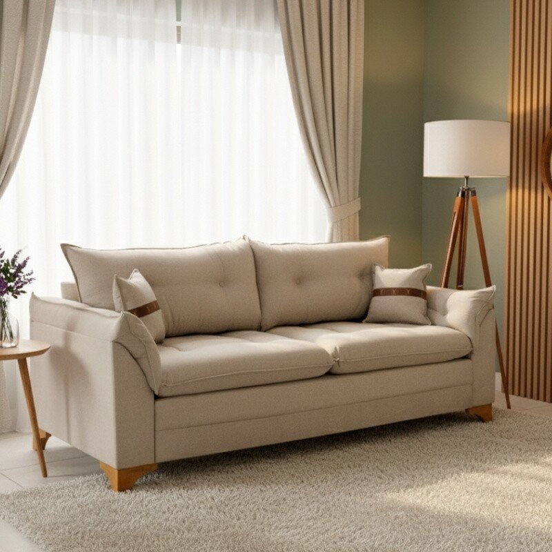 3{%%}Descrição{%%}Sofá 3 Lugares Creta Linho Bege 24 Larg. 2.00m – Molas bonnel