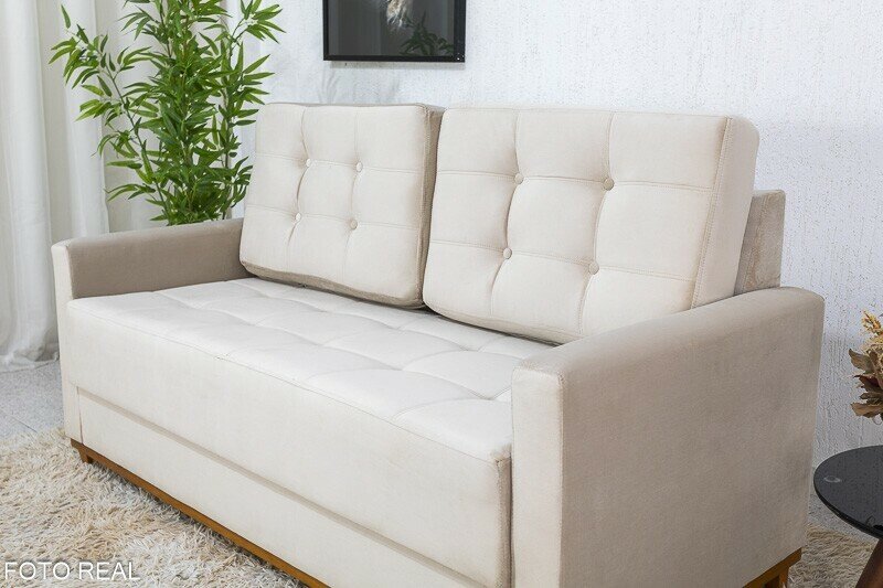 3{%%}Descrição{%%}Sofá 3 lugares Living Áustria Veludo Bege A32 Larg. 1.70m
