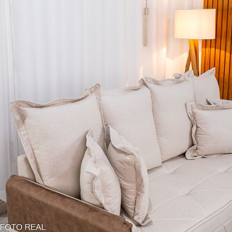 O linho possui uma textura naturalmente sofisticada, que confere ao sofá um aspecto elegante e atemporal.