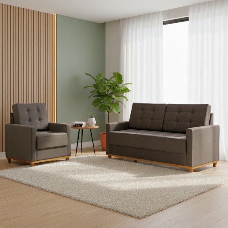 3{%%}Descrição{%%}Sofá Áustria 3 Lugares + Poltrona Áustria Marrom A17
