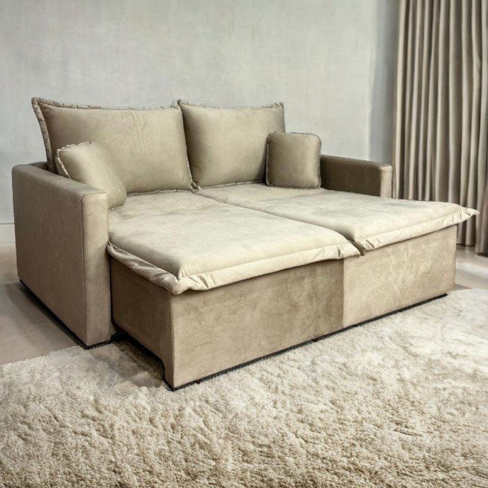 Sofá Cama Retrátil Positano 1,80 m Veludo Bege 3040/04 – INNOVE ESTOFADOS