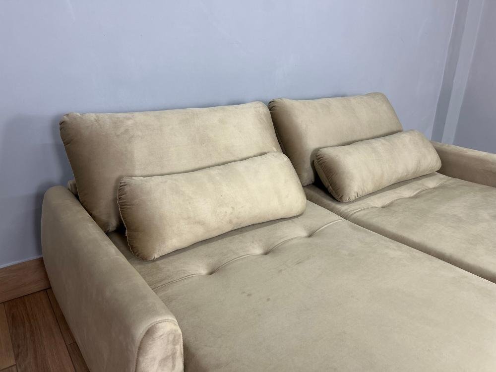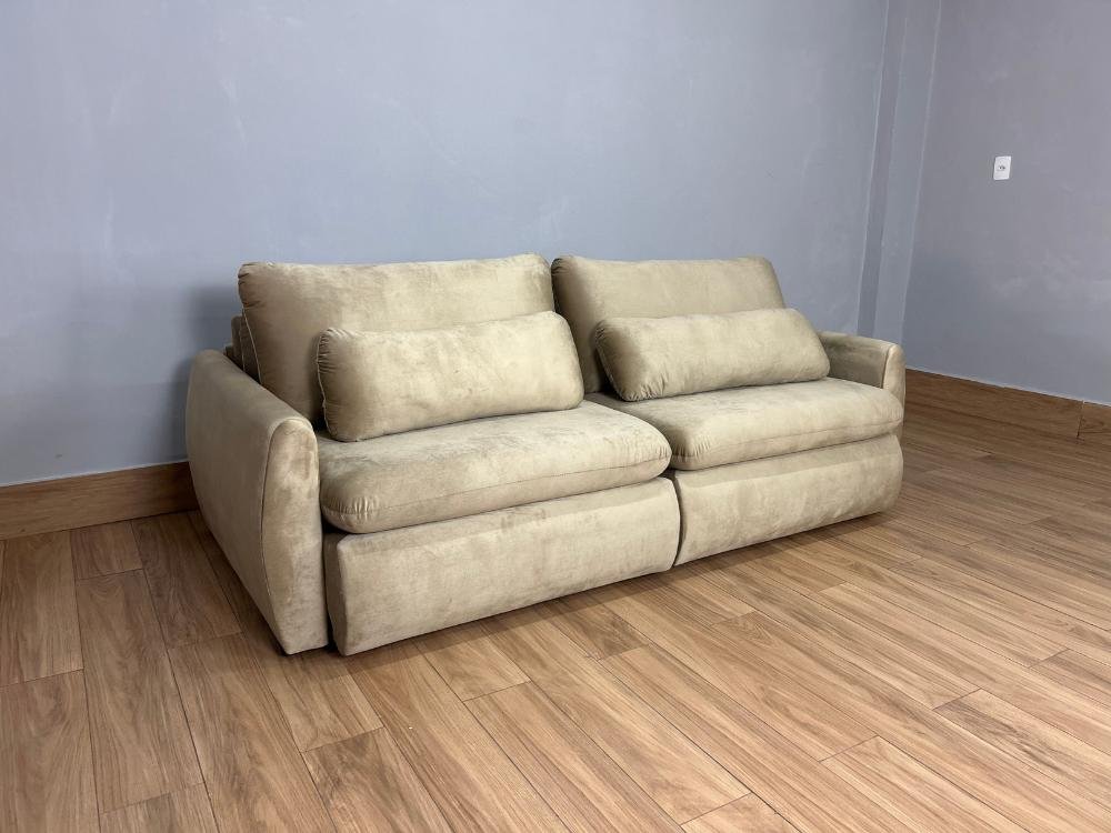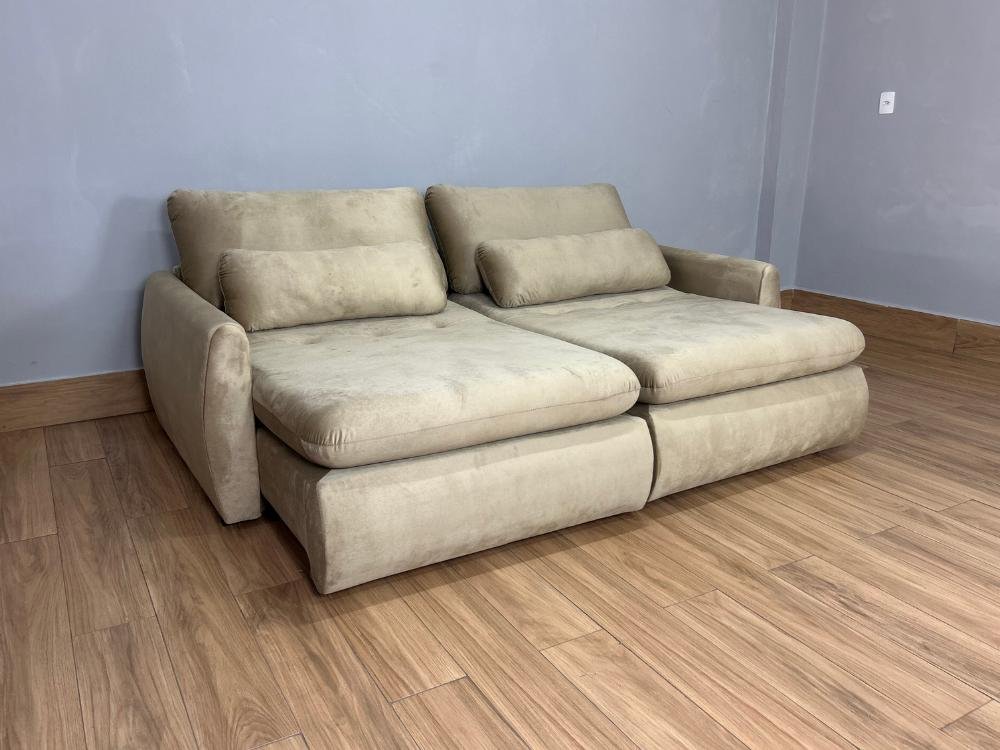 Sofá Cama Retrátil Reclinável Amaranto 2.30m Mod.100 – Capuccino Veludo