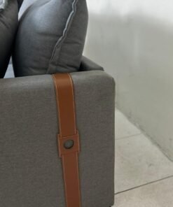 Sofá Cama Retrátil Reclinável Esparta 2.20m – Cinza Linho / Marrom Courino