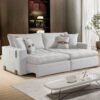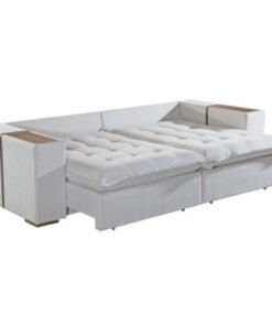 Sofá Cama Tebas 2,32 m Linho Gelo 07/Corino Dallas 07 – INNOVE ESTOFADOS