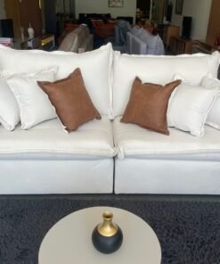 Sofá Cama Thebas/Gabriela 2,30 m Linho Cru 304/Courino Dalas – ZARAT ESTOFADOS