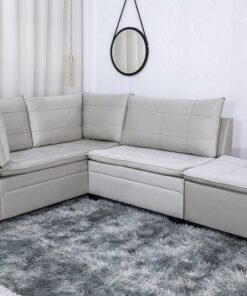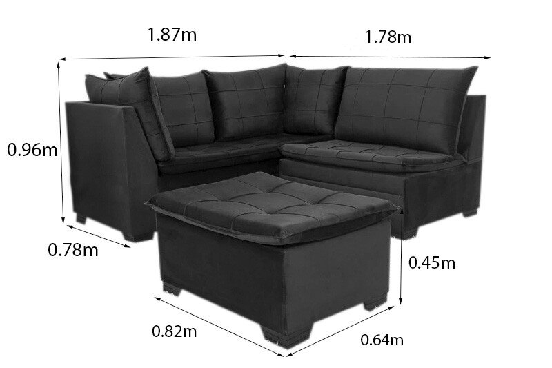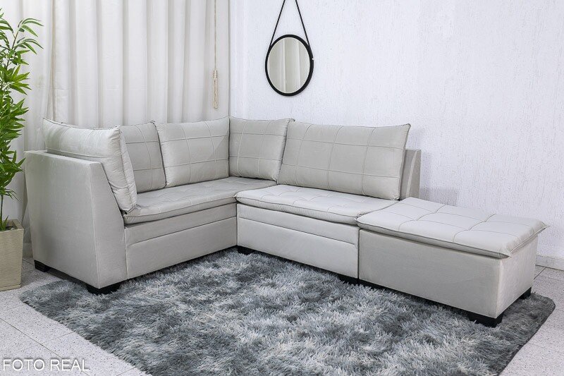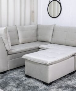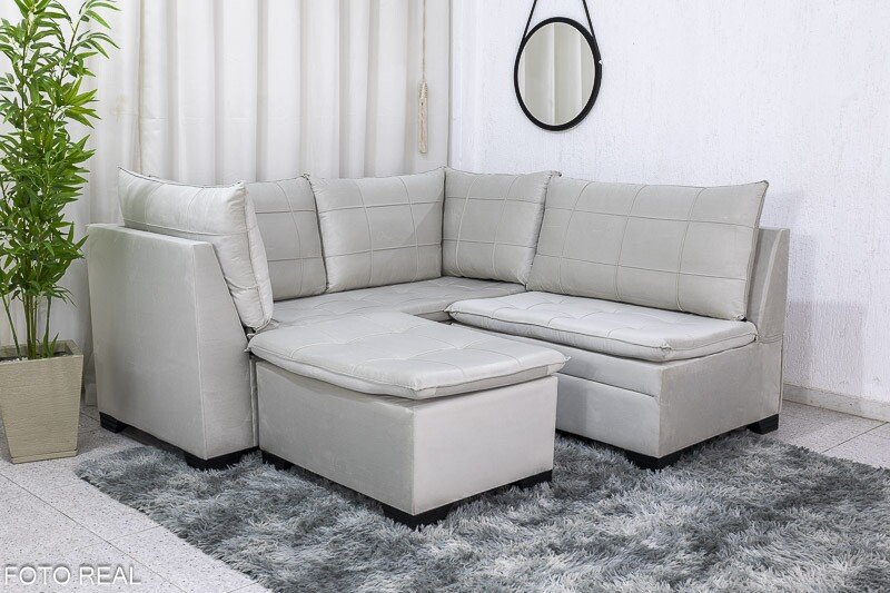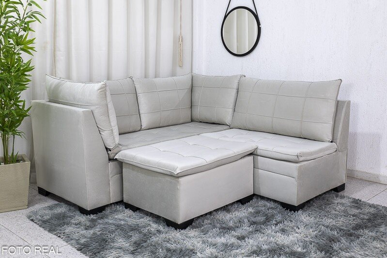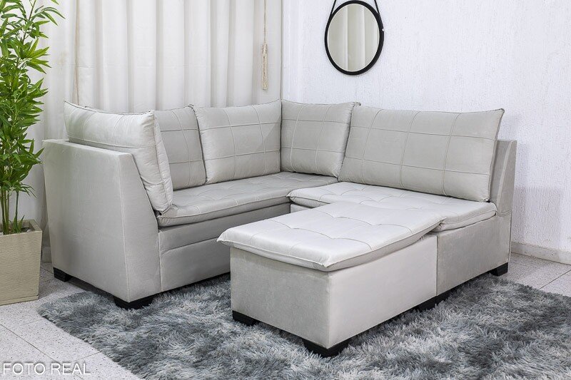 3{%%}Descrição{%%}Sofá Canto 5 lugares com Puff Viena Veludo Bege A32