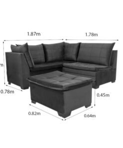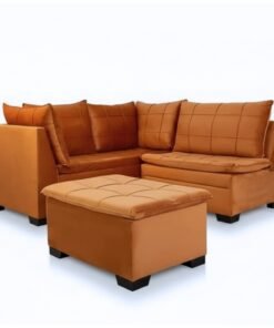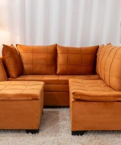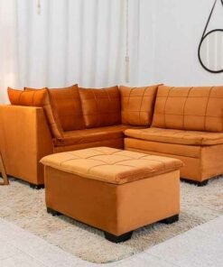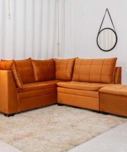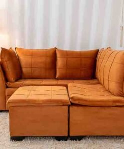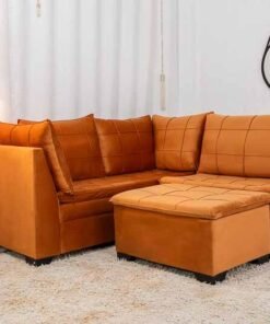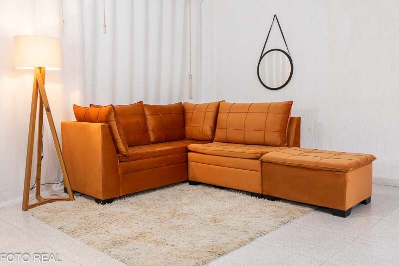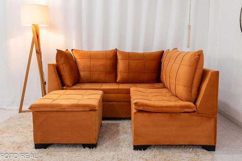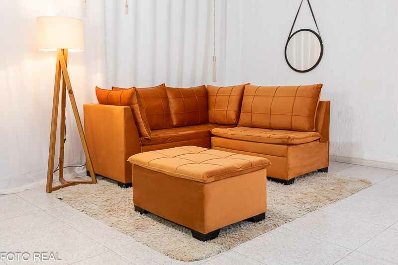 Sofá Canto 5 lugares com Puff Viena Veludo Terracota A62