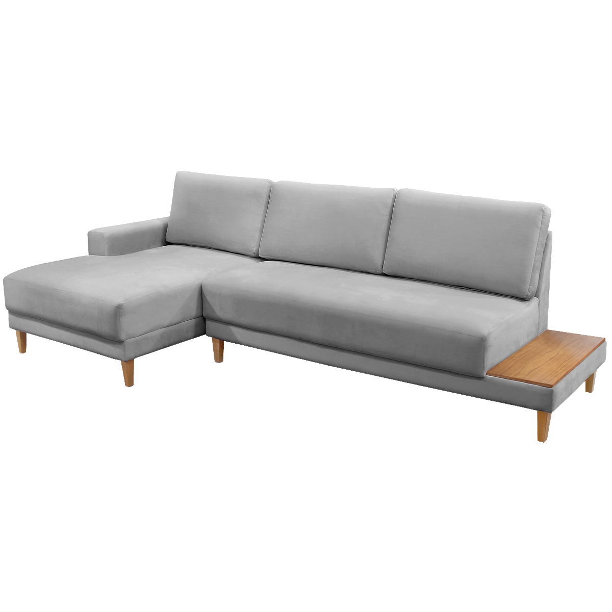 Sofá com Chaise Ref.825 2,90 m Chenile Linho Cinza Firenze – RONDOMÓVEIS
