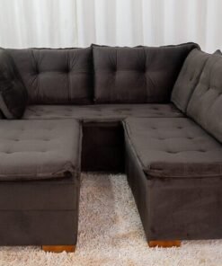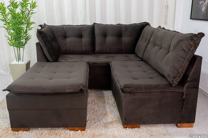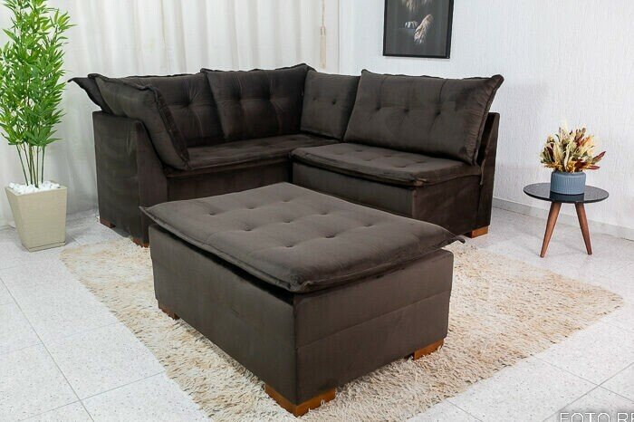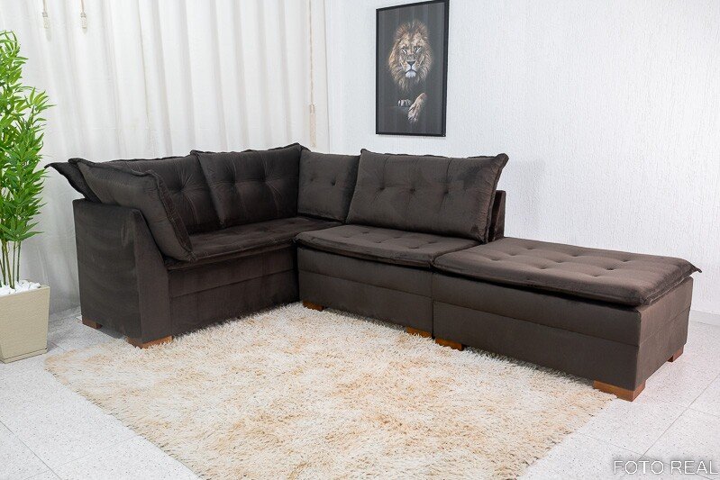 3{%%}Descrição{%%}Sofá de Canto Vênus Veludo 3 em 1 Marrom 524