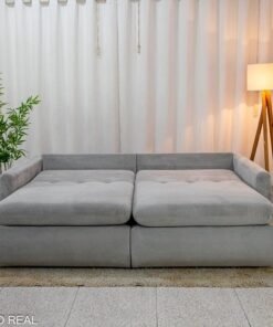 3{%%}Descrição{%%}Sofá Retrátil e Cama Amaranto 2.30m Veludo Plush Prata – Sem Caixa
