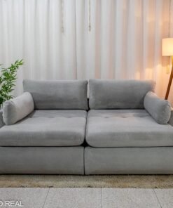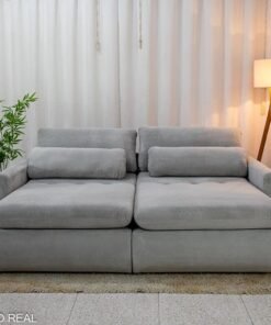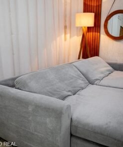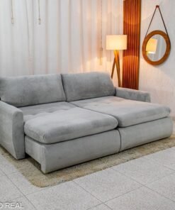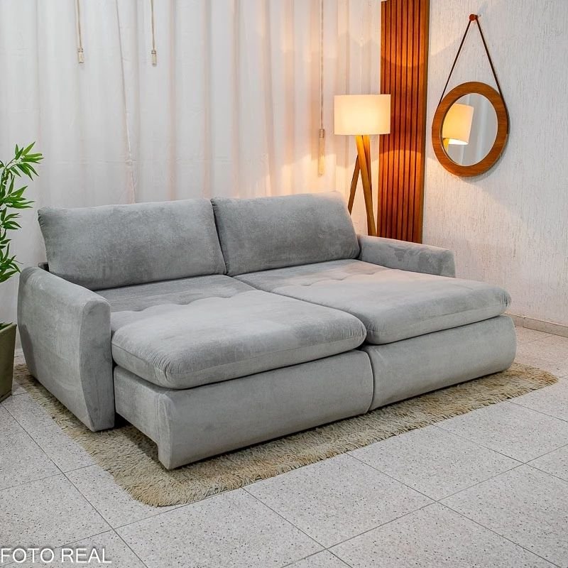 Esse modelo une conforto, praticidade e um visual elegante em um único produto. Com 2,30 metros de largura, ele acomoda bem até 4 pessoas e ainda vira uma cama espaçosa de 2,05×1,45m. ideal para receber visitas ou relaxar assistindo TV. Seu assento retrátil com pillow de 17cm e molas bonnel garante conforto mesmo por longas horas, e o encosto reclinável com almofadas soltas oferece aquele apoio extra para o corpo.