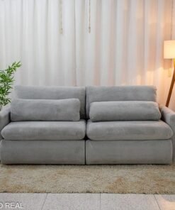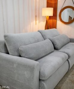 O tecido em Veludo Plush traz um toque macio e sofisticado, além de ser fácil de combinar com qualquer ambiente. Outro diferencial é o design sem caixa traseira, que deixa o sofá mais leve visualmente e facilita na hora da limpeza ou mudanças. Com estrutura reforçada em madeira de eucalipto e suportando até 130kg por pessoa, o Amaranto é uma escolha segura, funcional e cheia de estilo.