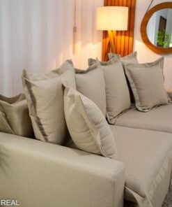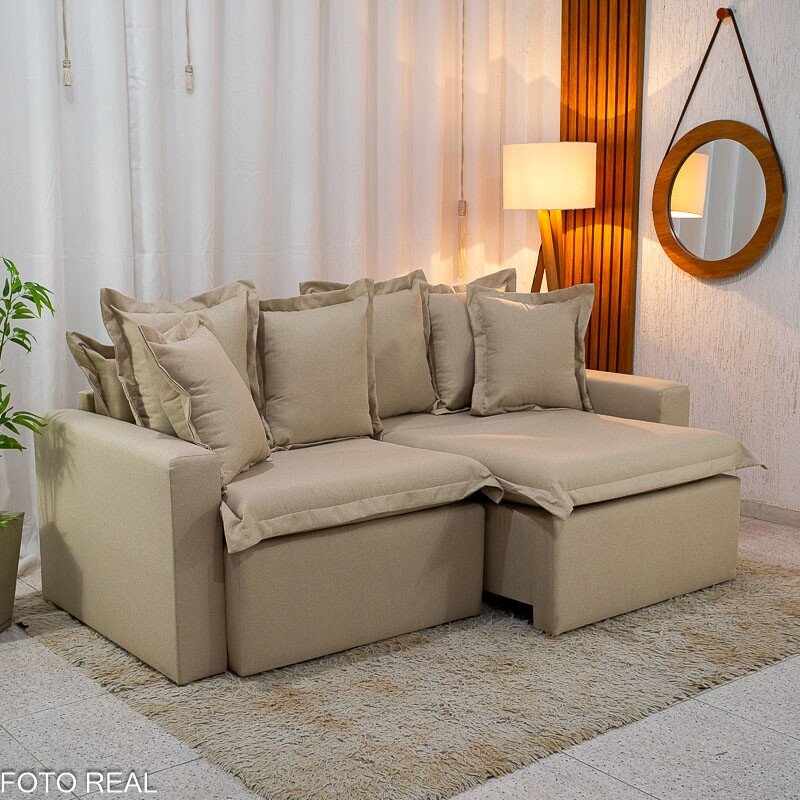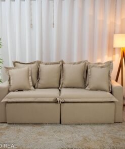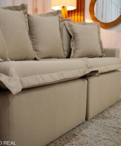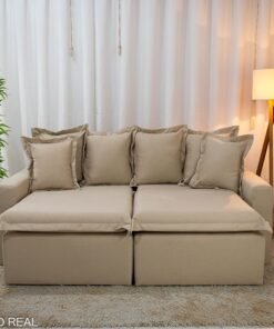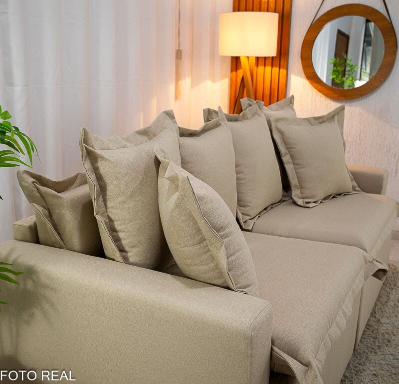 – Tecido linho: O linho possui uma textura naturalmente sofisticada, que confere ao sofá um aspecto elegante e atemporal. Seu visual suave e agradável pode dar um toque de classe à decoração de qualquer ambiente.