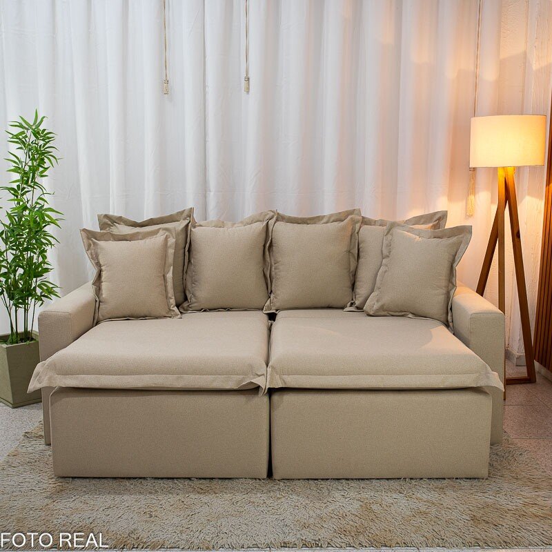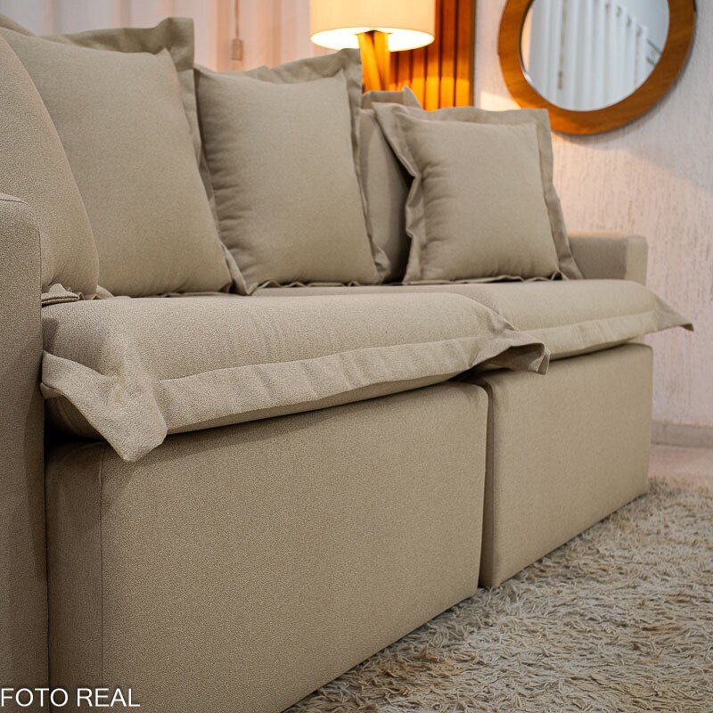 3{%%}Descrição{%%}Sofá Retrátil e Cama Torino 2.10m Linho Bege 505 – Sem Caixa