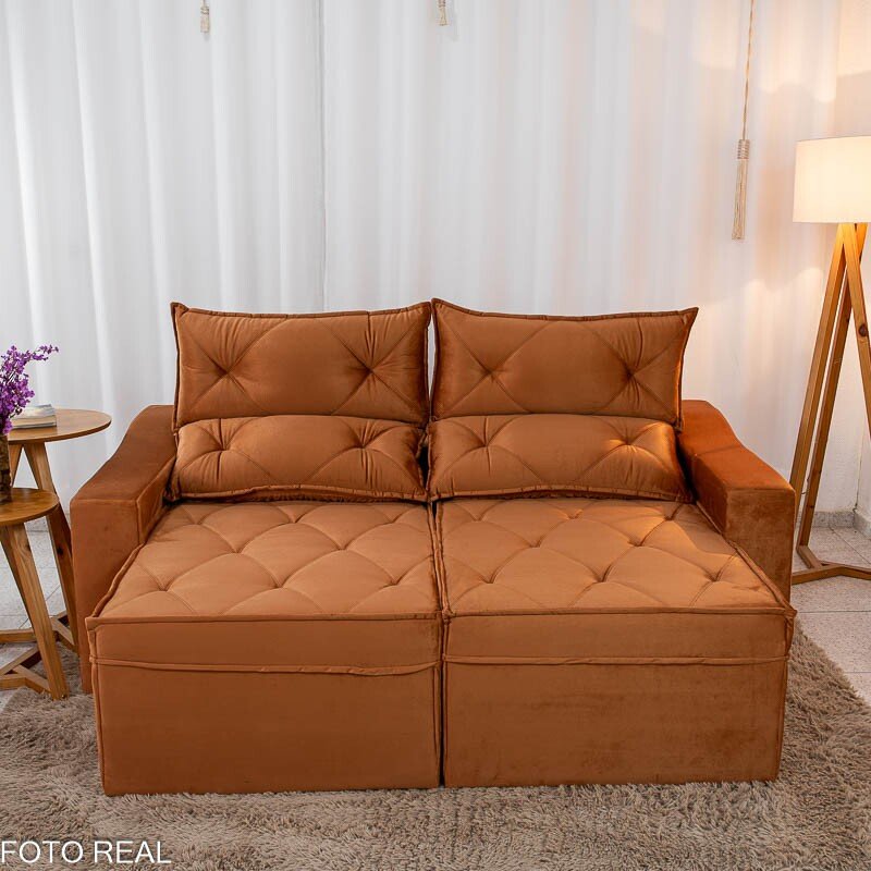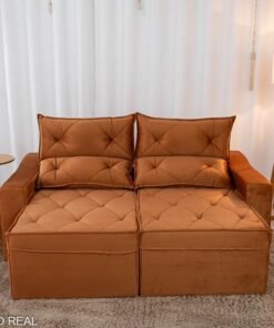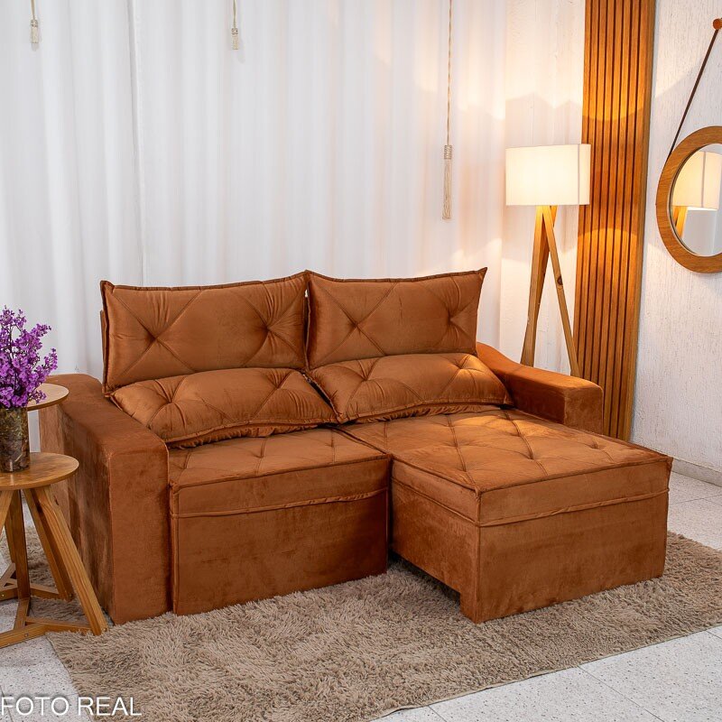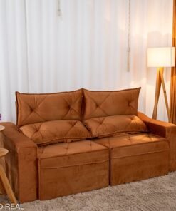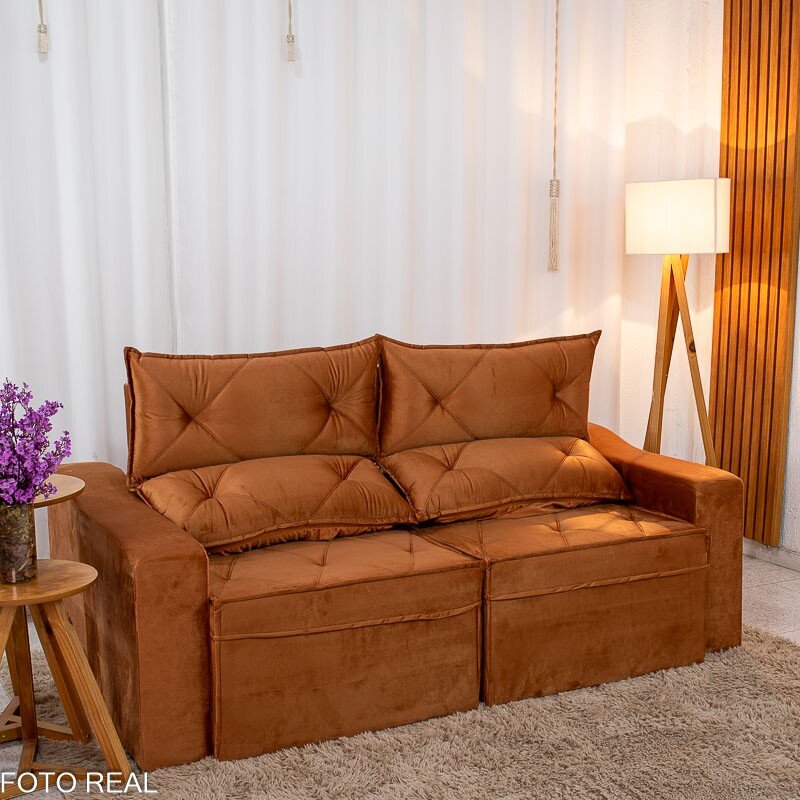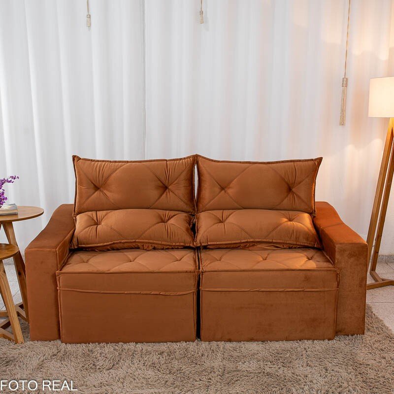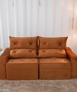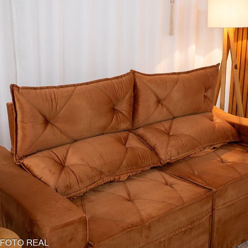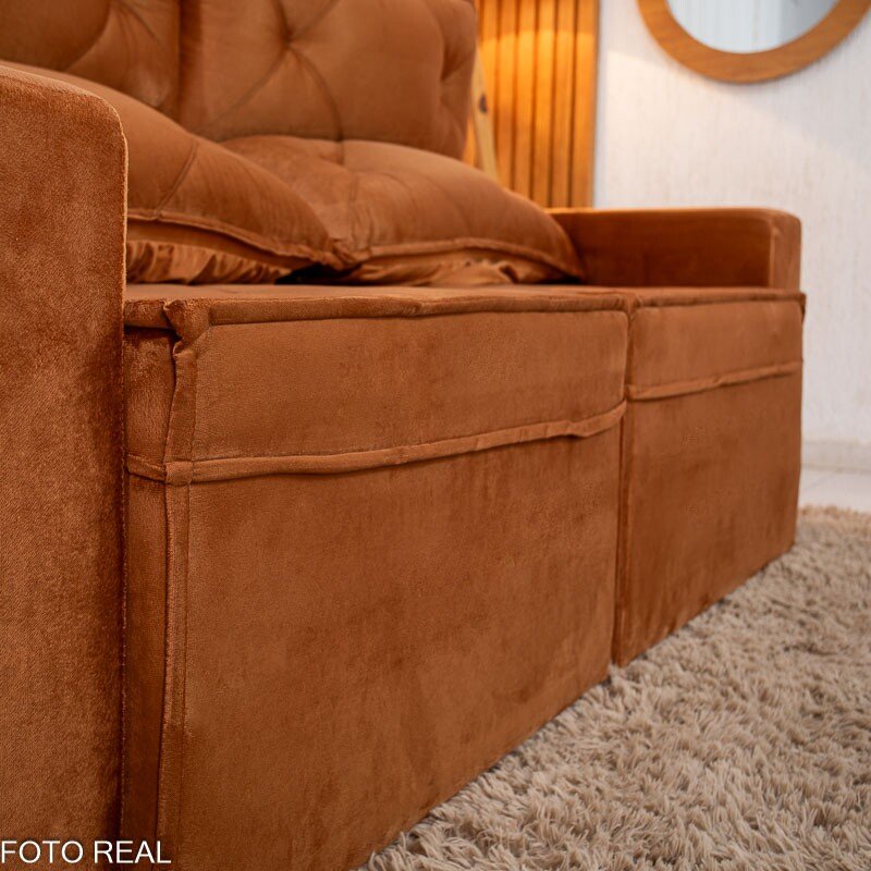3{%%}Descrição{%%}Sofá Retrátil Reclinável Moscou Veludo Terracota A62 Larg. 2.00m