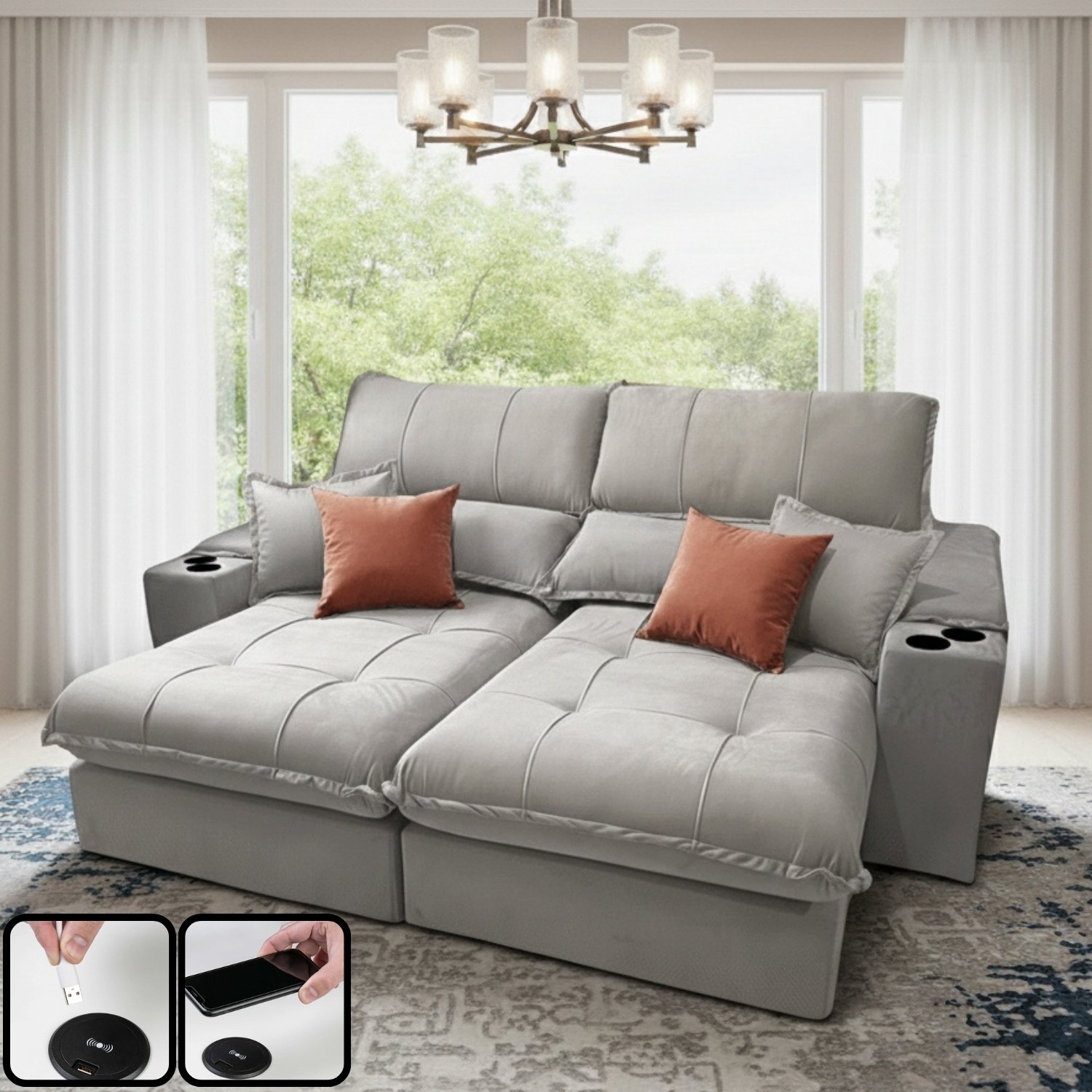 Seja o primeiro a avaliar “Sofá Retrátil e Reclinável Afrodite Slim 2,50 m Veludo Cinza Prata 107 – ZARAT ESTOFADOS”