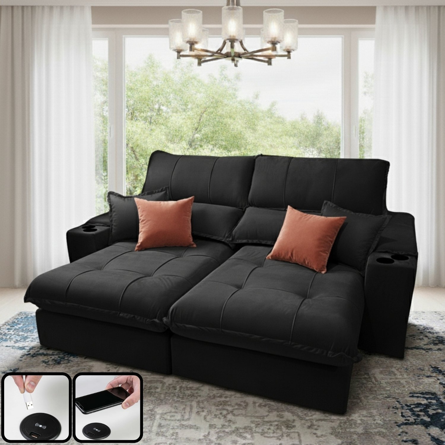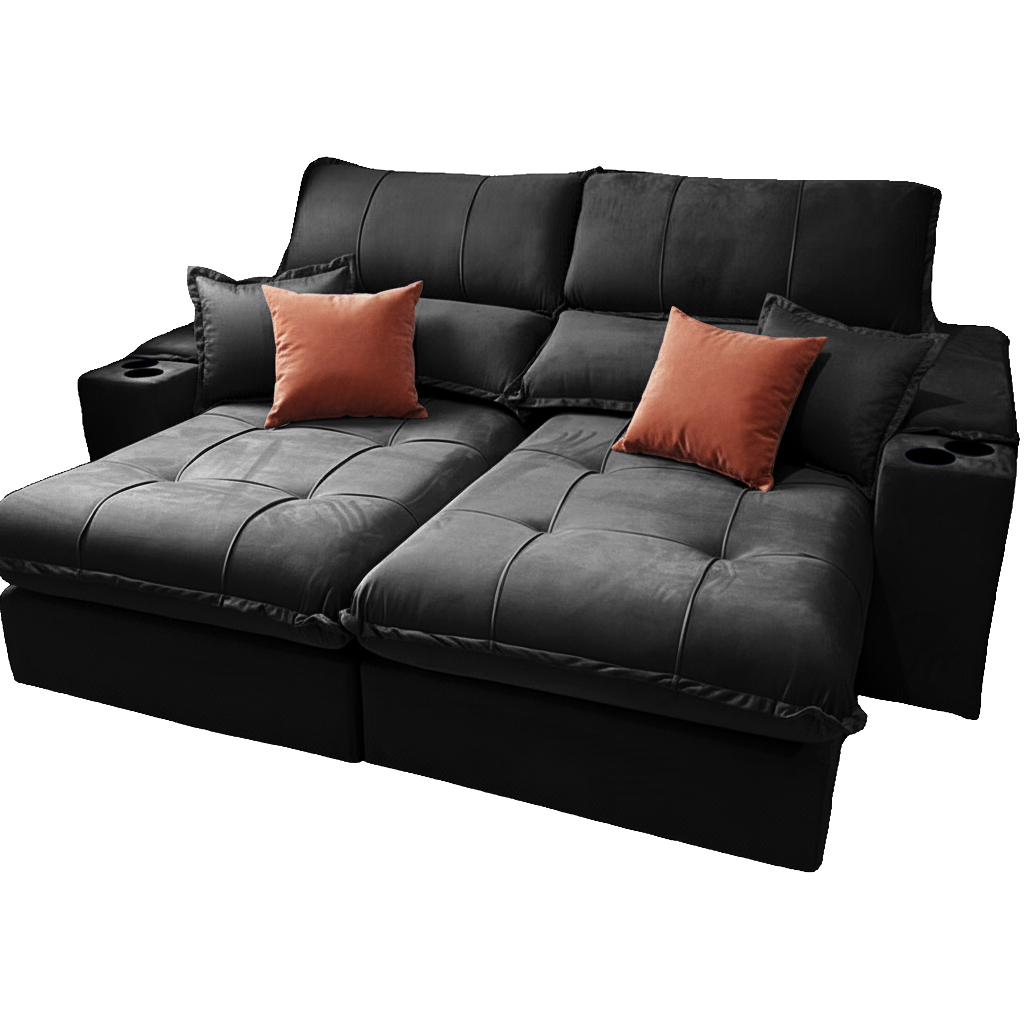 Sofá Retrátil e Reclinável Afrodite Slim 2,50 m Veludo Preto 111 – ZARAT ESTOFADOS
