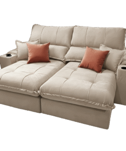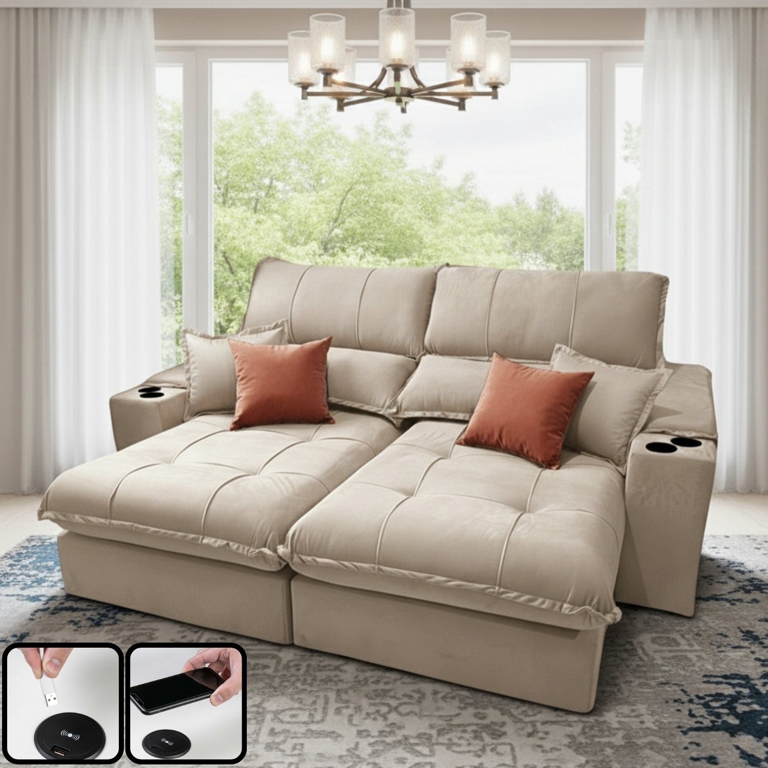 Sofá Retrátil e Reclinável Afrodite Slim 2,90 m Veludo Bege 106 – ZARAT ESTOFADOS