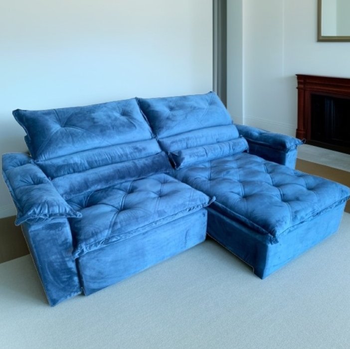 Sofá Retrátil e Reclinável Agata 240 Azul – IMPÉRIO ESTOFADOS