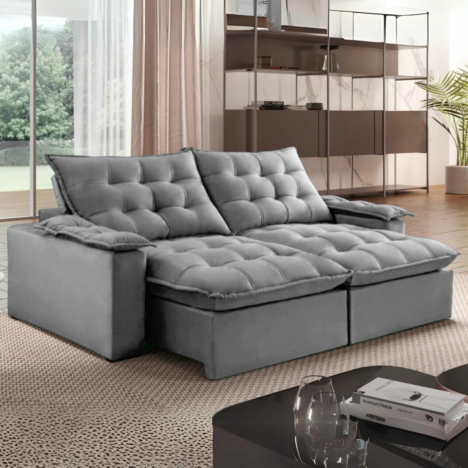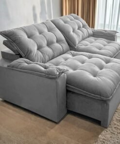 Sofá Retrátil e Reclinável Alaska 2,40 m Prata – MONTANO ESTOFADOS