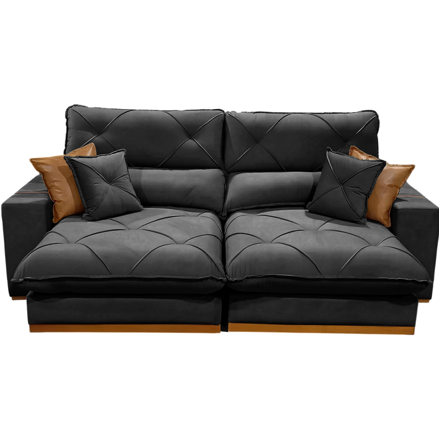 Sofá Retrátil e Reclinável Aquiles/Gran Bello 2,30 m Veludo Preto 111 – ZARAT ESTOFADOS