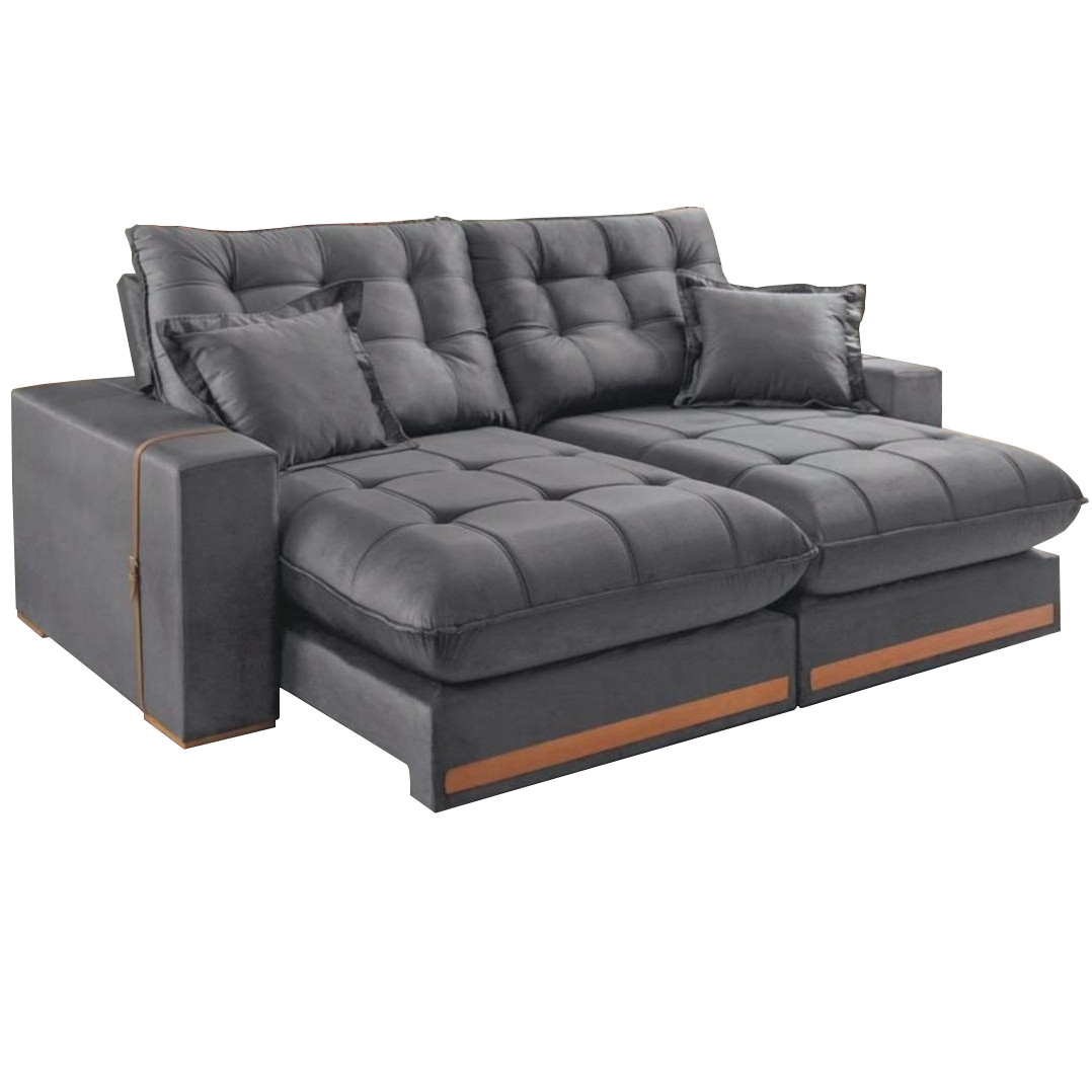 Sofá Retrátil e Reclinável Ártemis 017 2,50 m Veludo Cinza Grafite – VICAM ESTOFADOS
