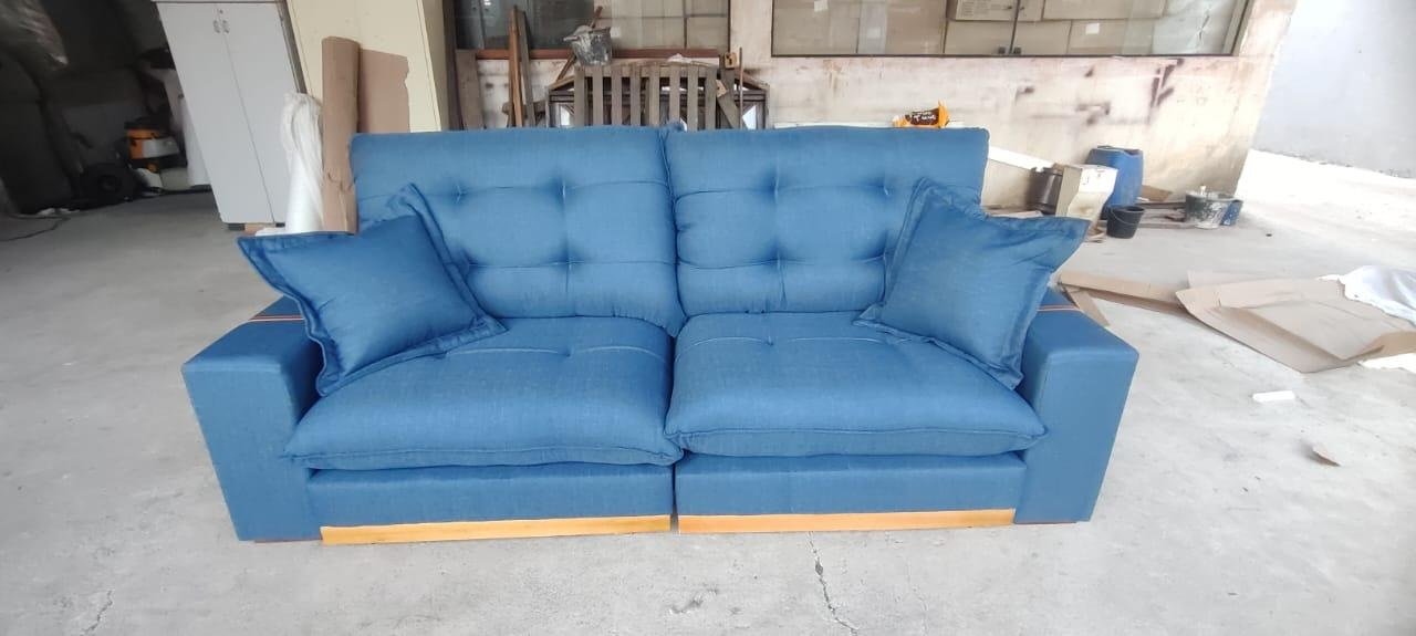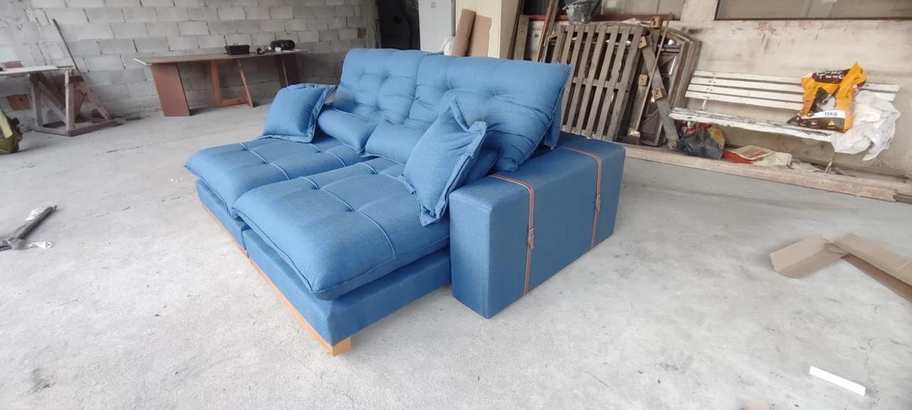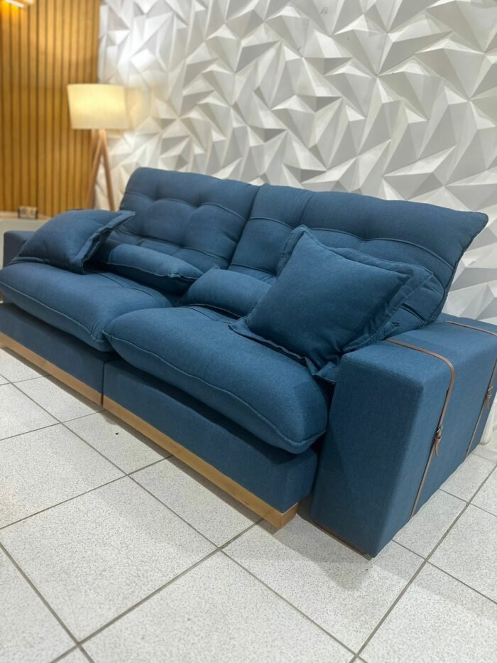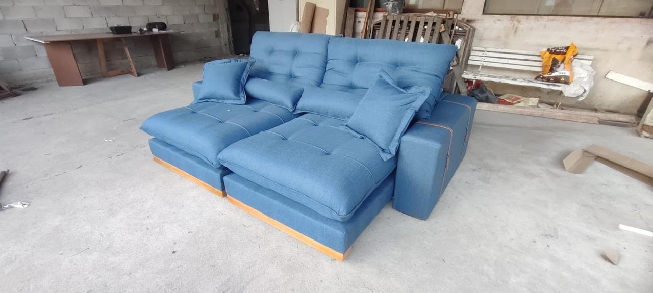 Sofá Retrátil e Reclinável Arthur 2,50 m Linho Azul 2009 – D’VITRINE ESTOFADOS
