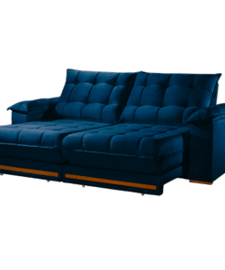 Sofá Retrátil e Reclinável Barcelona 2,50 m Veludo Azul – ESTOFADOS TEIXEIRA