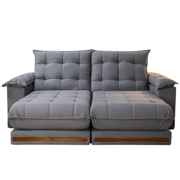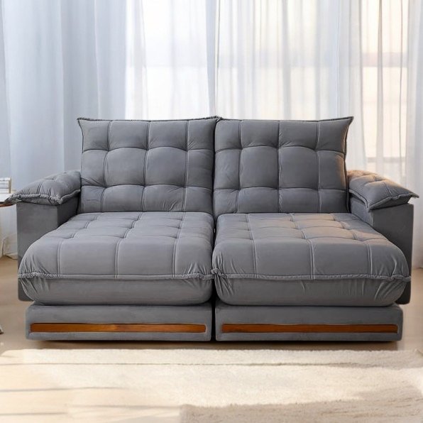 Sofá Retrátil e Reclinável Barcelona 2,50 m Veludo Cinza 321 – ESTOFADOS TEIXEIRA