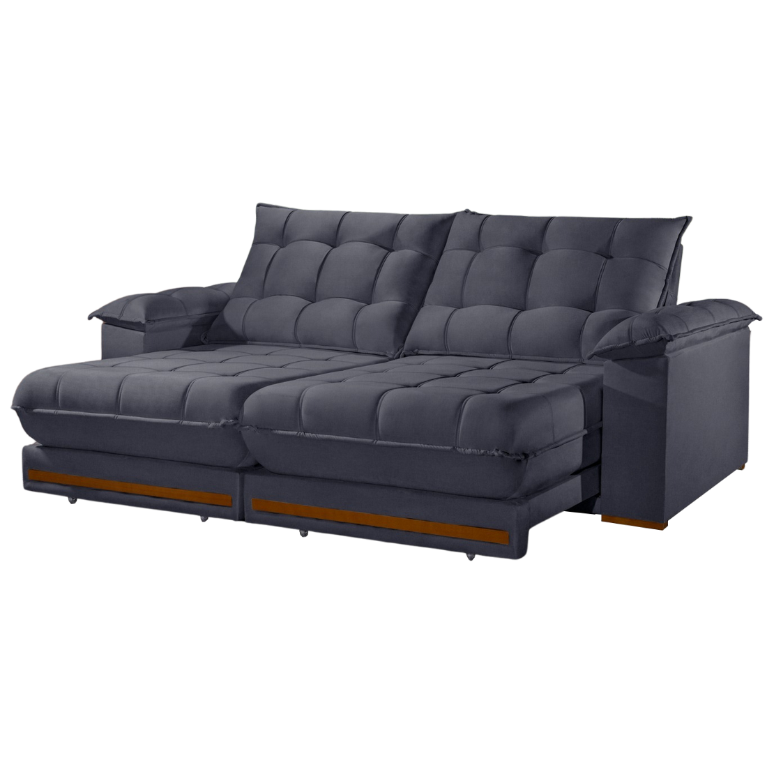Sofá Retrátil e Reclinável Barcelona 2,50 m Veludo Cinza Grafite – ESTOFADOS TEIXEIRA