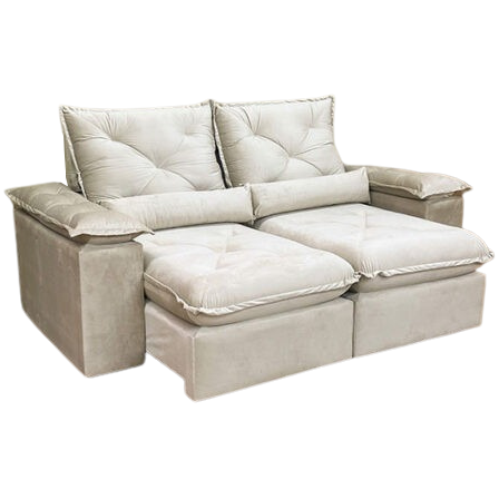 Sofá Retrátil e Reclinável Brasão 2,00 m Veludo Bege – MD ESTOFADOS