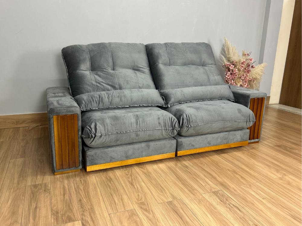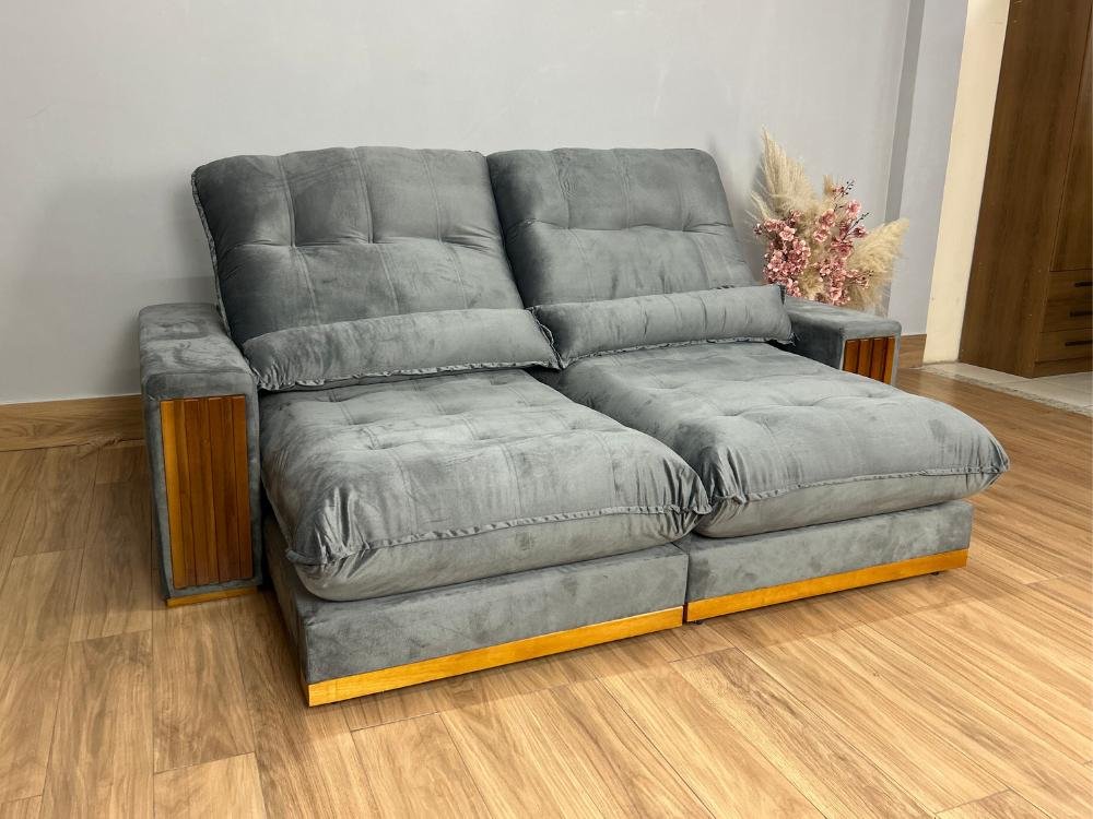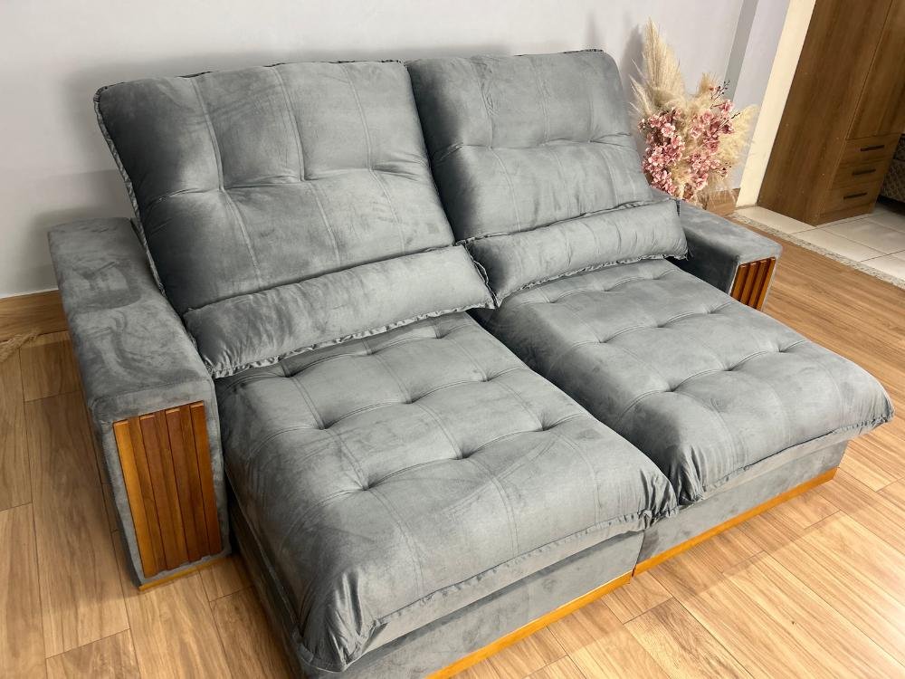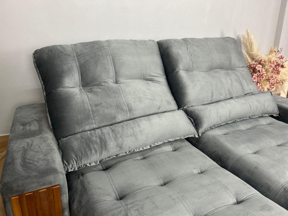 Sofá Retrátil Reclinável 2.50m Santiago Veludo Cinza 526 – Molas Ensacadas