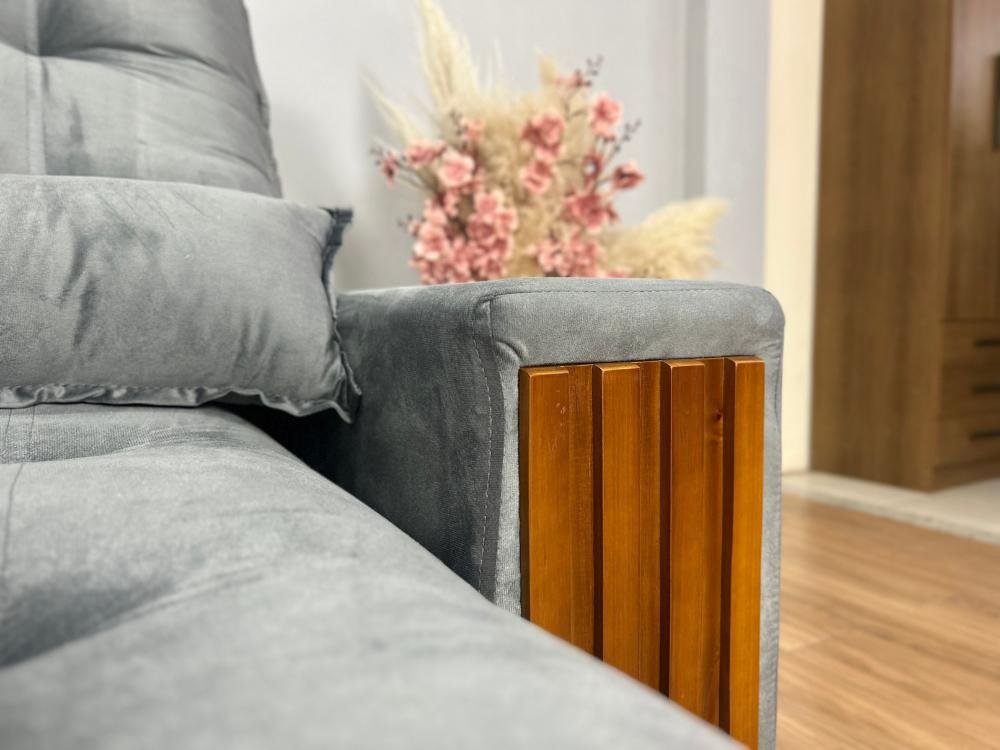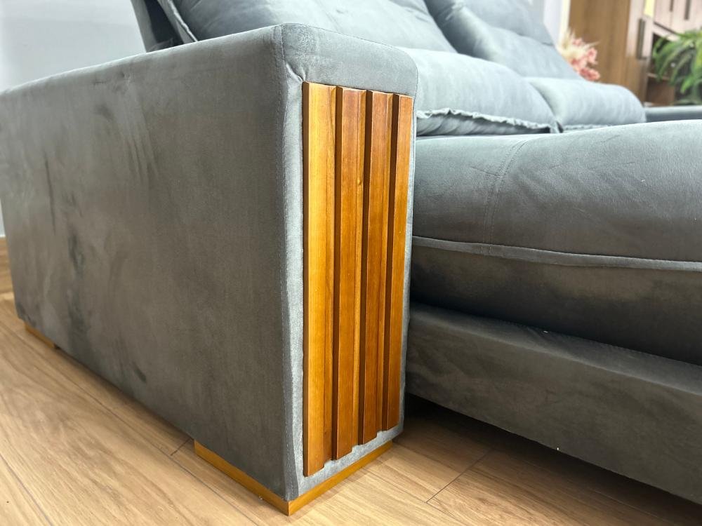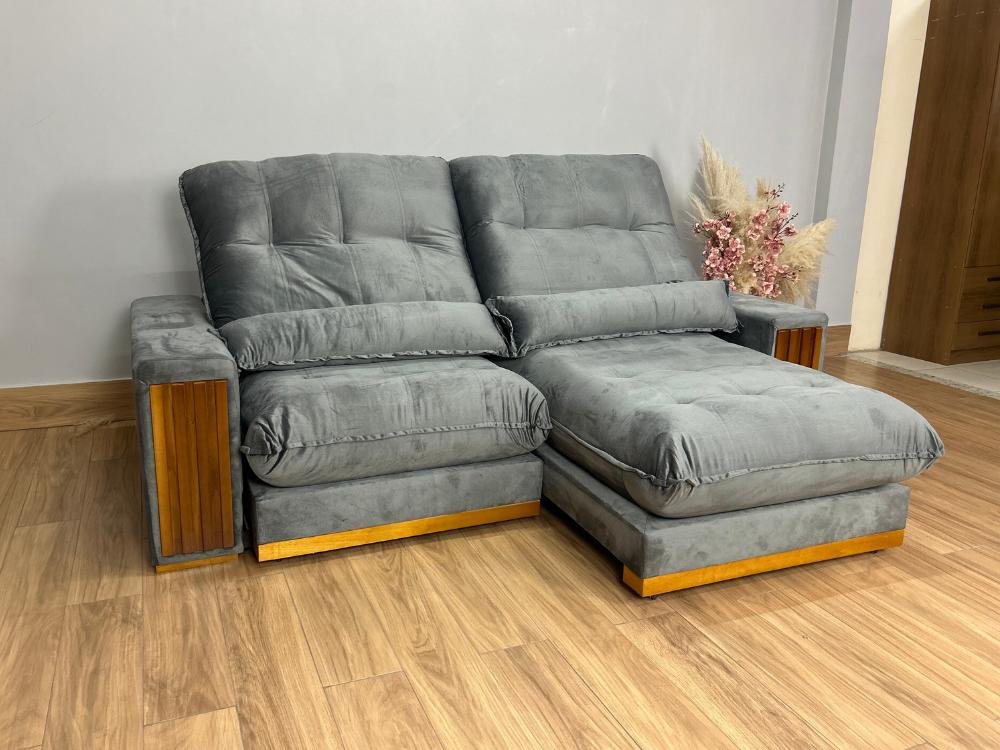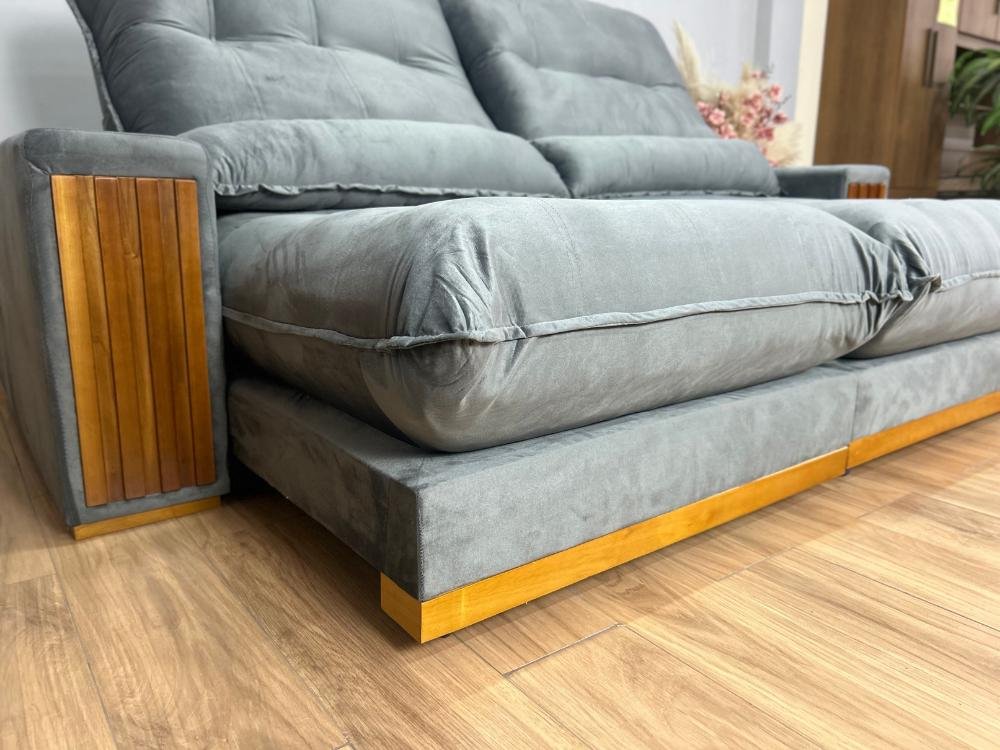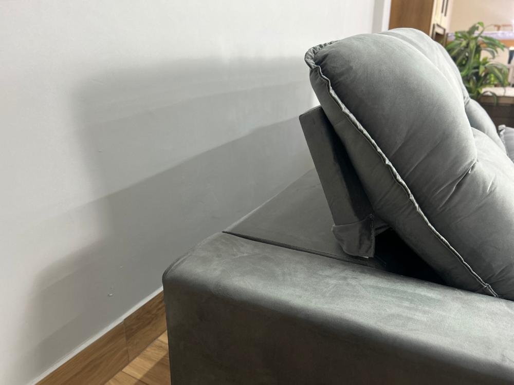 Sofá Retrátil Reclinável 2.50m Santiago Veludo Cinza 526 – Molas Ensacadas