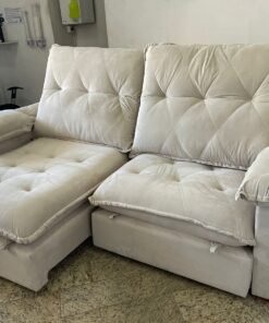 Sofá Retrátil e Reclinável Hércules/Zurique 2,90 m Veludo Marfim – VICAM ESTOFADOS