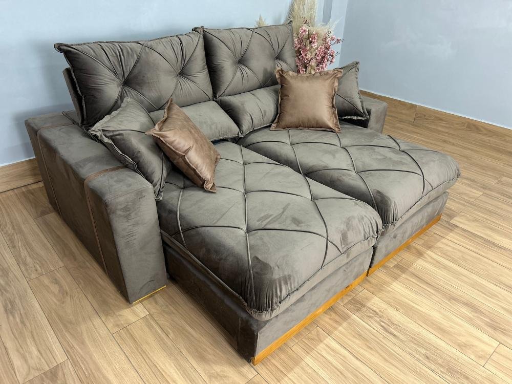 Sofá Retrátil e Reclinável Gran Bello 2.50m – Marrom Veludo