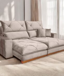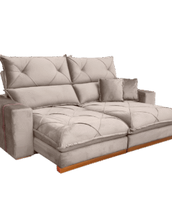 Sofá Retrátil e Reclinável Gran Bello 2,50 m Veludo Bege – QUINE ESTOFADOS