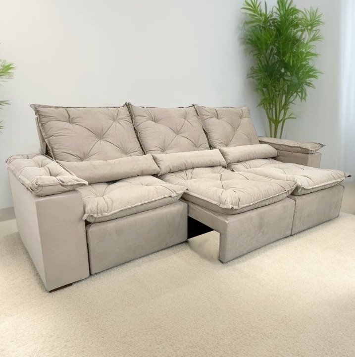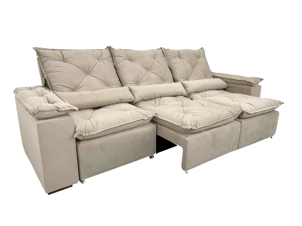 Sofá Retrátil e Reclinável Grécia 2,70 m Bege – KASA COMIGO ESTOFADOS