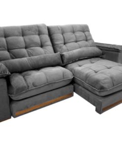Sofá Retrátil e Reclinável Hércules 2,50 m Veludo Cinza – VICAM ESTOFADOS