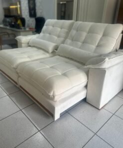 Sofá Retrátil e Reclinável Hércules 2,50 m Veludo Marfim – VICAM ESTOFADOS