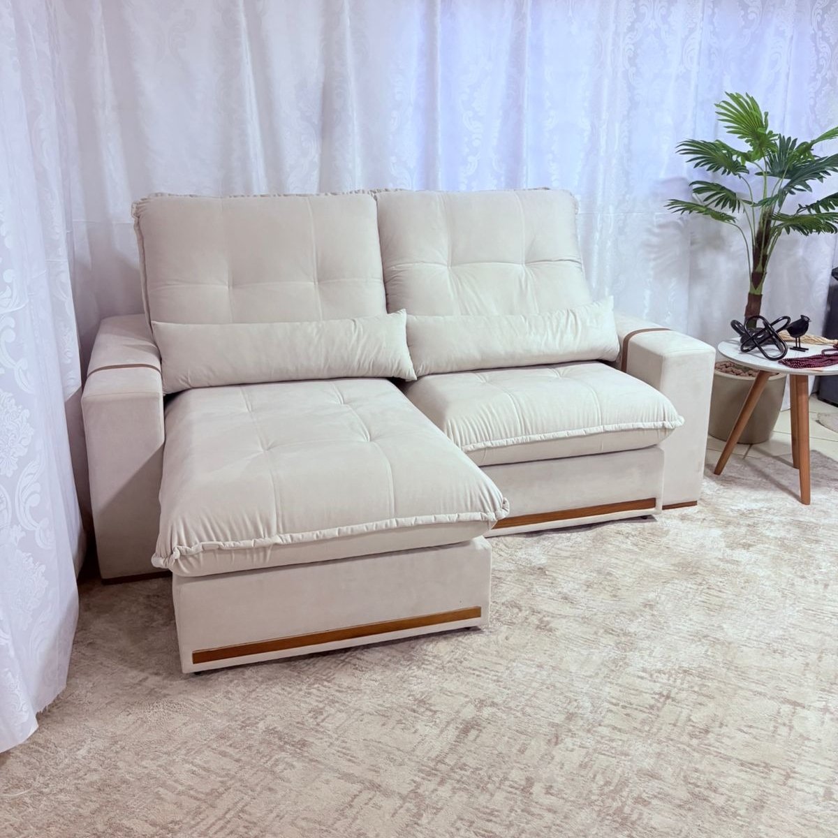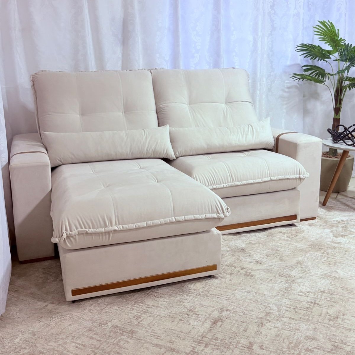 Sofá Retrátil e Reclinável Hórus 2,00 m Veludo Bege 106 – ZARAT ESTOFADOS