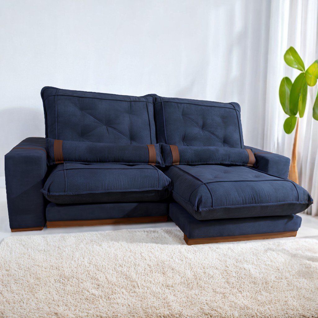 Sofá Retrátil e Reclinável Ibiza/Poseidon 2,50 m Veludo Azul – ZARAT ESTOFADOS