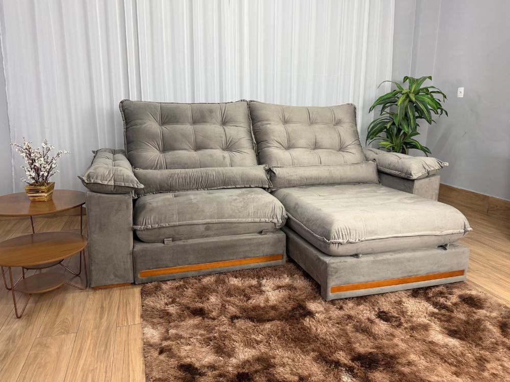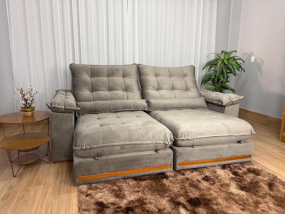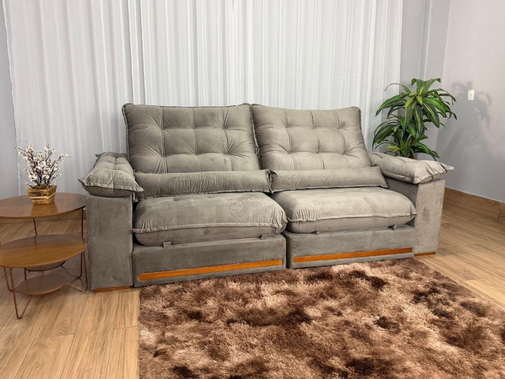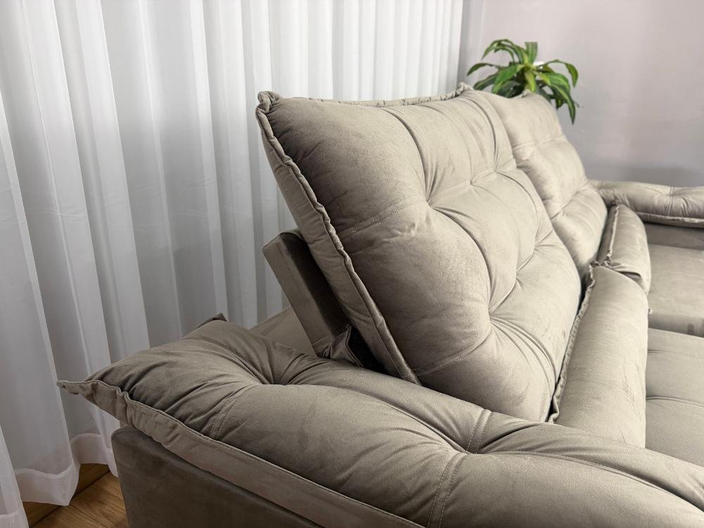 Sofá Retrátil e Reclinável Istambul 2.10m – Bege Veludo