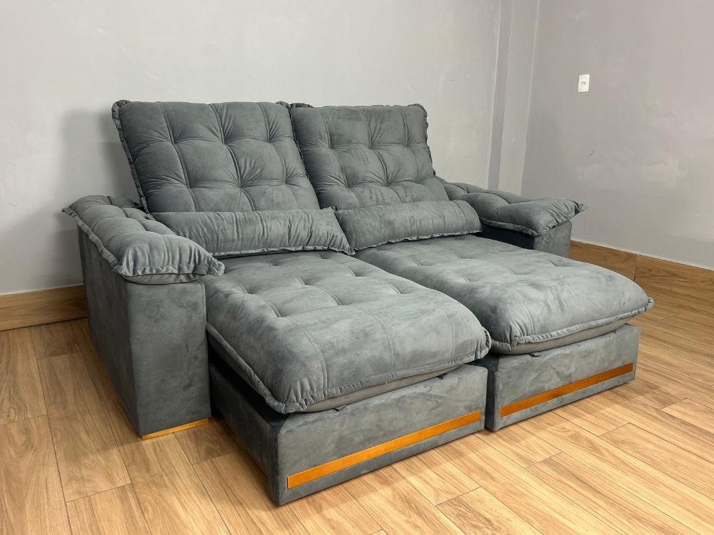 Sofá Retrátil e Reclinável Istambul 2.10m – cinza Veludo