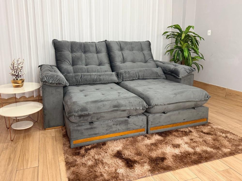 Sofá Retrátil e Reclinável Istambul 2.30m – Cinza Veludo