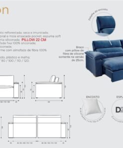 – Encosto reclinável com almofadas fixas 100% fibra siliconada