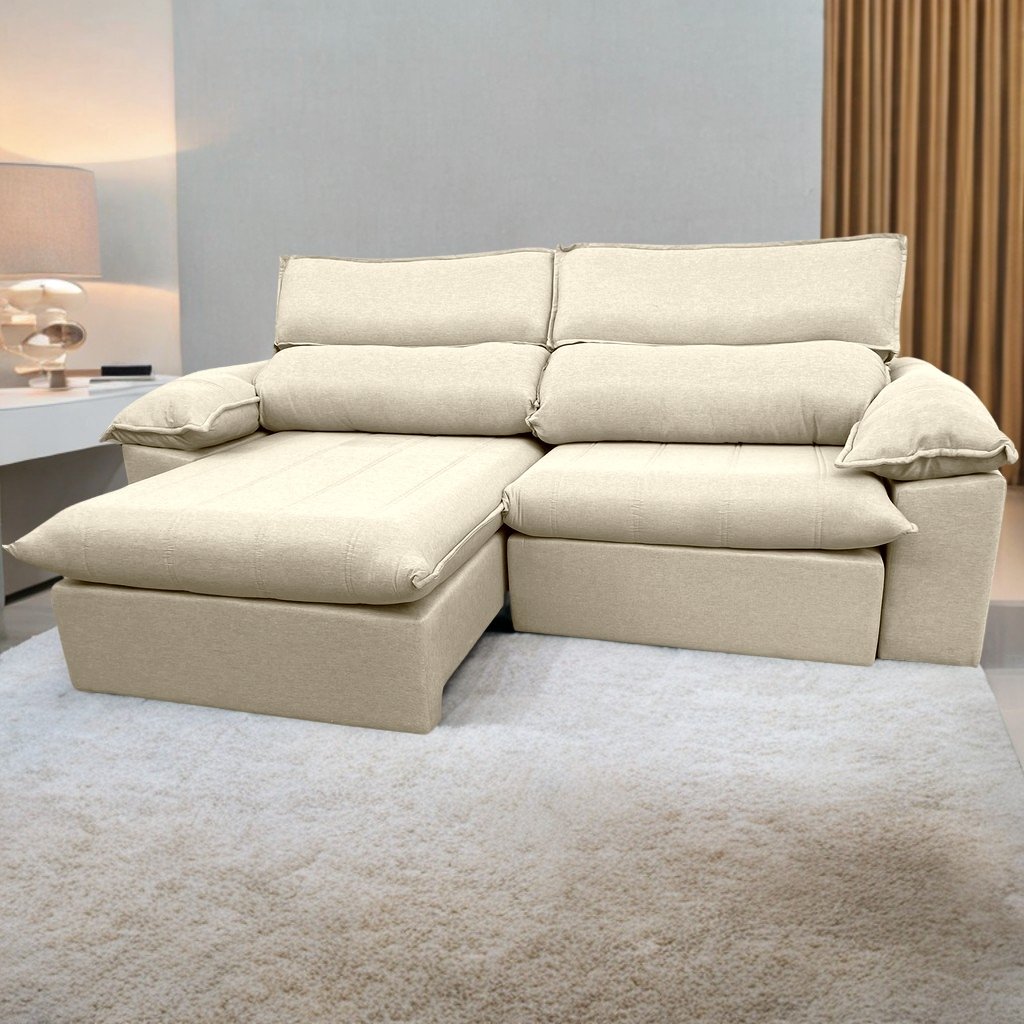 Sofá Retrátil e Reclinável Jackson 2,50 m Linho Bege 3105 – UNIART ESTOFADOS