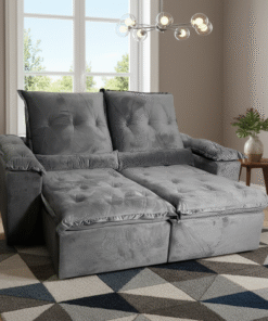 Sofá Retrátil e Reclinável Londrina 2,30 Veludo Cinza Grafite – IMPÉRIO ESTOFADOS